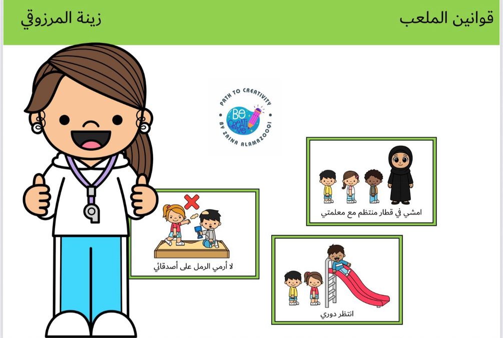 منتج إلكتروني يضم تسع بطاقات مبسطة وملونة، يهدف إلى تعريف أطفال الروضة بقوانين اللعب في الملعب بلغة واضحة وتصميم جذاب، ليساعدهم على فهم القواعد بطريقة سهلة وممتعة